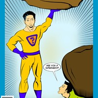 Cover art for a Comic featuring a Sarcastic Superhero. Hand sketched and then scanned and painted in Photoshop.